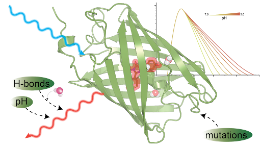 We dissect the pH dependence of far-red fluorescent proteins by coupling broadband absorption/emission spectroscopy with multichannel time-correlated single-photon counting (TCSPC) and decay-associated spectra (DAS) analysis. Kinetic models fitted to the DAS reveal the pH dependency of intramolecular relaxation channels and help to understand the interaction of the molecules with protons and support the specific design of optimized pH sensors. Molecular dynamics (MD) at different protonation states rationalize the observed photophysics and give rise to understanding the role of specific amino acids in stabilisation of the chromophore and modulation of the excited-state proton transfer (ESPT) efficiency, providing a mechanistic basis for pH-sensitive lifetime and insensitivity measurements. Collectively, the combined spectroscopy–modeling–MD framework links intramolecular water/chromophore dynamics to ESPT-controlled rates and establishes design rules for red fluorescent protein pH biosensors compatible with lifetime-based readouts, super-resolution/ultrafast fluorescence microscopy, and pump–probe photoacoustic reporting in vivo.